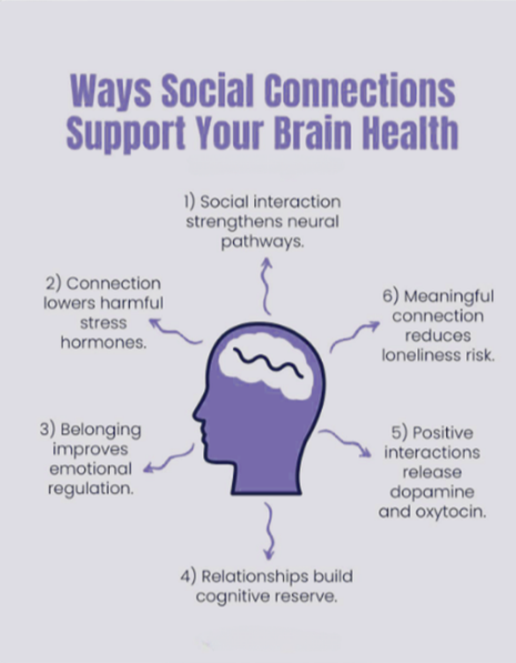 Connection doesn’t always require big social events or long conversations. A quick chat, a shared meal, or a simple message can still activate the brain in meaningful ways. Even small moments of connection can support brain health, reminding us that relationships are not just part of life, but a vital part of how our brains thrive.